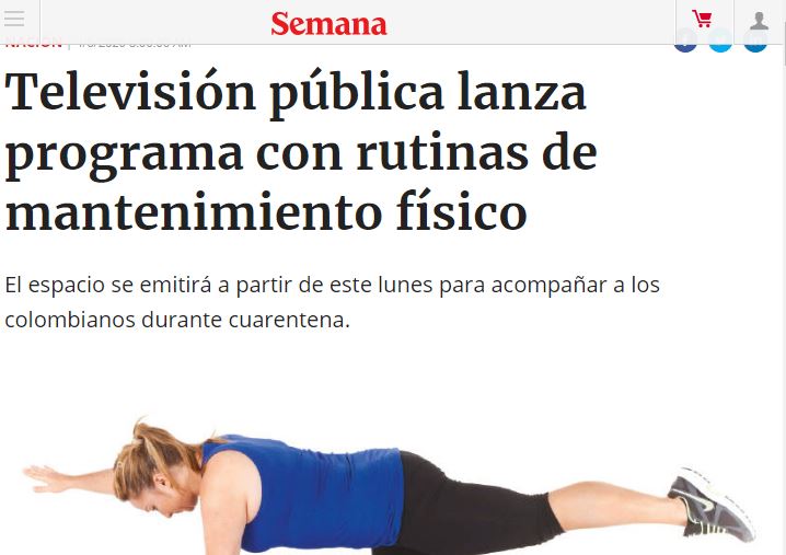 “En alianza con el Ministerio del Deporte y Canal Trece tendremos desde este lunes, por Señal Colombia y plataformas digitales, el estreno de Entrenando Juntos, un espacio de 30 minutos en el que los televidentes podrán encontrar rutinas de mantenimiento físico, tips de salud mental, juegos de agilidad y guías de nuestros grandes deportistas y entrenadores expertos, que nos ayudarán a llevar estos días de aislamiento de la mejor manera”, dijo el gerente de RTVC, Álvaro García.
