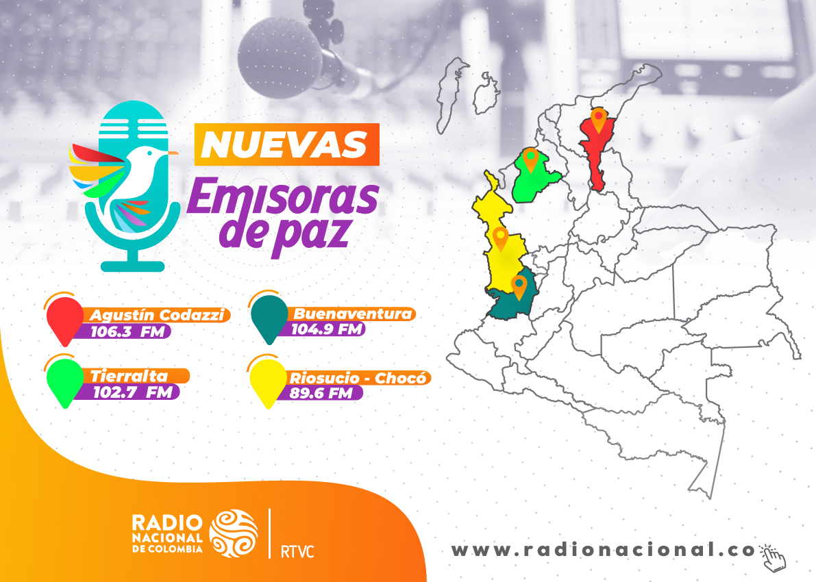 Las nuevas emisoras, que operan en las frecuencias 106.3 MHz (Agustín Codazzi), 102.7 MHz (Tierralta), 89.6 MHz (Riosucio) y 104.9 MHz (Buenaventura), se suman a la red ya existente de Emisoras de Paz, completando un total de 20 estaciones distribuidas estratégicamente en zonas clave, que fueron afectadas por el conflicto.